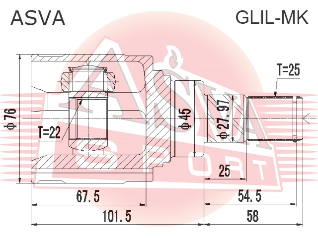 ШРУС ВНУТРЕННИЙ ЛЕВЫЙ 22x45x25